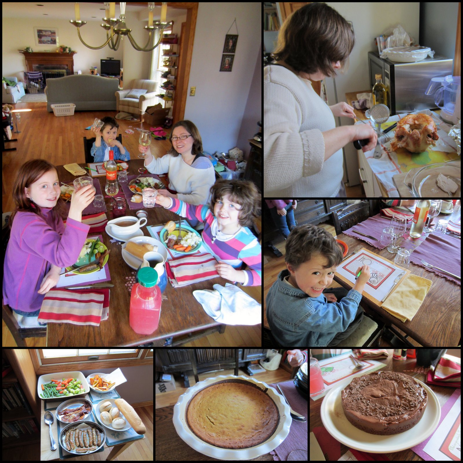 And yes, we had turkey and pies (pumpkin and chocolate). And no, we didn't have creamed corn, anything involving canned soup or marshmallows (although we did have some popcorn as an appetizer!)